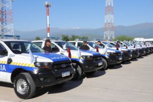 El gobernador Gustavo Sáenz encabezó hoy el acto de entrega de nuevos vehículos a la Policía de Salta. La ceremonia inició pasada las 10.30 en la playa de estacionamiento sur de Casa de Gobierno.