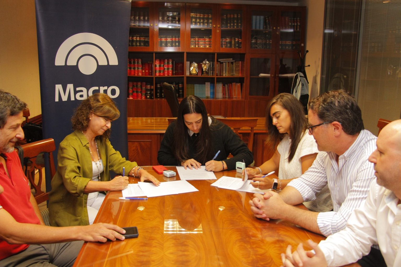 La secretaria de Gobierno, Agustina Agolio, junto a la coordinadora general de la Escuela de Emprendedores, Agustina Costa, firmaron un convenio de colaboración con la gerente divisional del banco Macro, Jorgelina Basso.