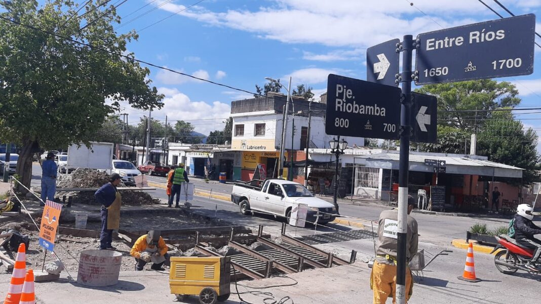 En avenida Entre Ríos esquina Pje. Riobamba, se están realizando tareas de hormigonado y reposición de reja de desagüe pluvial.