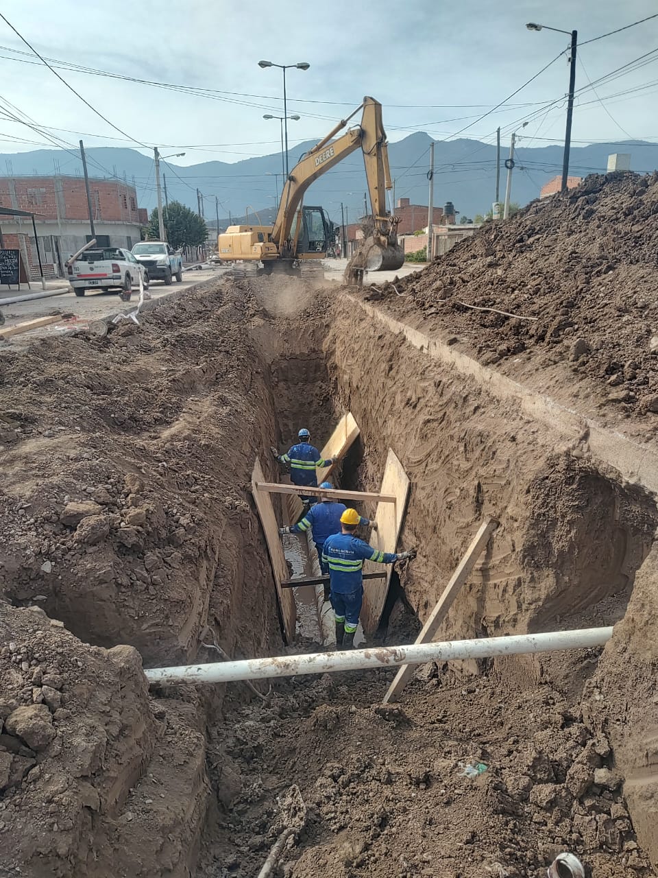 Al mismo tiempo, el personal de la Empresa inició los trabajos de la segunda etapa de reparación de la red colectora en calle Ángel Vargas. En esta zona, personal operativo de cloacas continúa trabajando en doble turno para realizar el recambio de cañería obsoleta por su antigüedad.