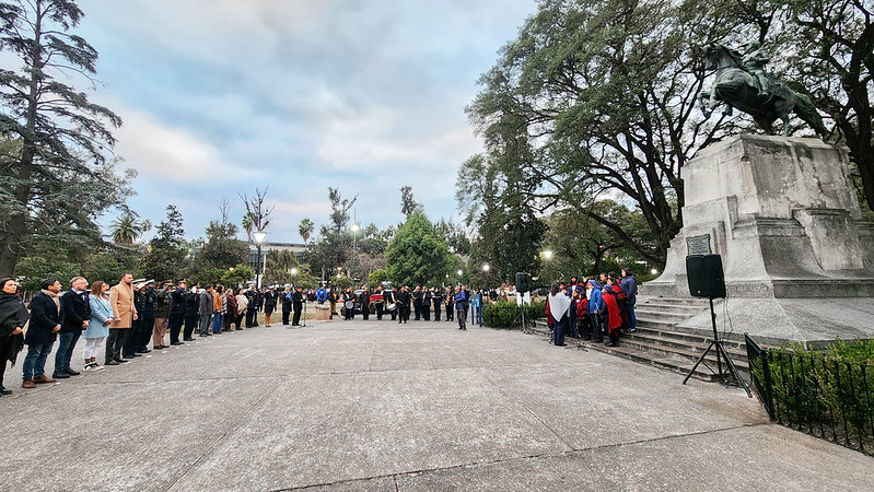 El acto en plaza San Martín inició con el izamiento de banderas. En el caso de la nacional, estuvo a cargo de Madile, acompañado por el comandante de la V° Brigada de Montaña, coronel Ricardo Felipe Fresta. Misma acción realizaron con la provincial, los secretarios municipales de Gobierno y de Tránsito y Seguridad Vial, Agustina Agolio y Matías Assennato, respectivamente. La ceremonia continuó con la entonación del Himno Nacional Argentino y de la Marcha a Malvinas, acompañados por la Banda de Música Municipal 25 de Mayo. Posteriormente se escucharon palabras alusivas, a cargo del director de la biblioteca de la Legislatura Provincial, José de Guardia de Ponté. En su alocución recordó los hechos históricos que garantizaron la Declaración de la Independencia Nacional, poniendo de relieve el rol fundamental de los generales Martín Miguel de Güemes y José de San Martín. Finalmente, sostuvo: “Es importante entender que la soberanía es irrenunciable, que nuestra cultura es la base sustancial de nuestra identidad y que tenemos que defenderla siempre, cueste lo que cueste”. Seguidamente, se llevó a cabo una presentación de danzas tradicionales a cargo del ballet Estirpe Salteña.