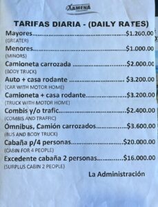 Tarifas para hospedarse en el camping Carlos Xamena: