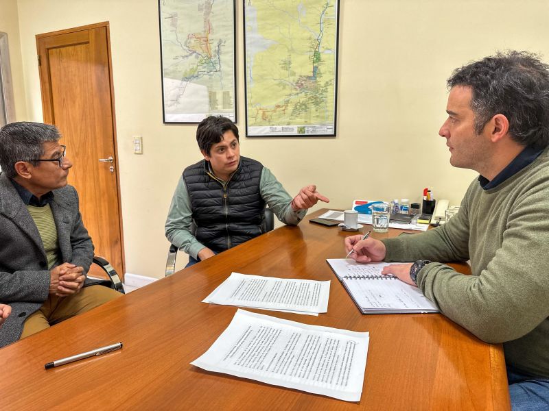 El presidente de Aguas del Norte, Ignacio Jarsún, y el gerente General, Juan Bazán, recibieron al intendente de Tartagal, Franco Hernández Berni, para concretar la rúbrica de un convenio de trabajo.