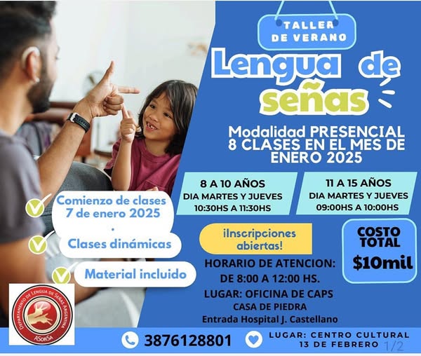 Se trata de una capacitación sobre lengua de señas que se brindará a partir del 7 de enero en el Centro Cultural 13 de febrero.