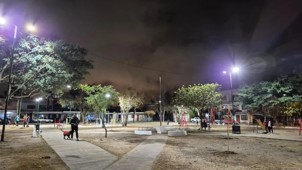 Las obras se llevaron a cabo en la plaza Pereyra Rozas, ubicada entre las calles Juramento, Francisco Aguirre, El Jardín y C. Blanco. Las tareas se ejecutaron de manera conjunta con los vecinos ya que la Municipalidad había realizado previamente un relevamiento del espacio verde para mejorar las luminarias.