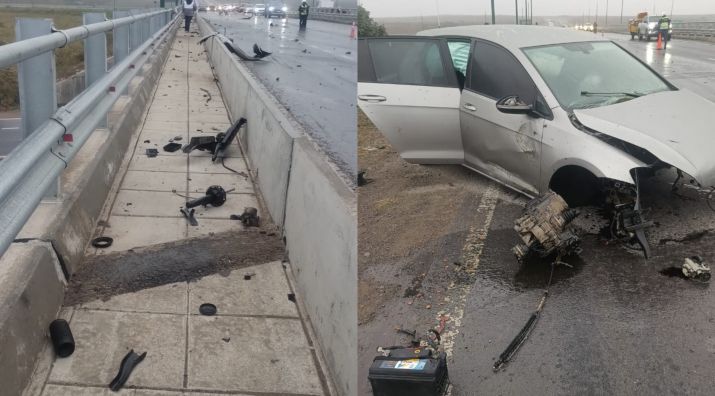 Minutos antes de las 16:00, un automóvil que circulaba a gran velocidad impactó de lleno contra la defensa del puente ubicado a la altura de la estación de servicio Shell, en la zona de La Loma.