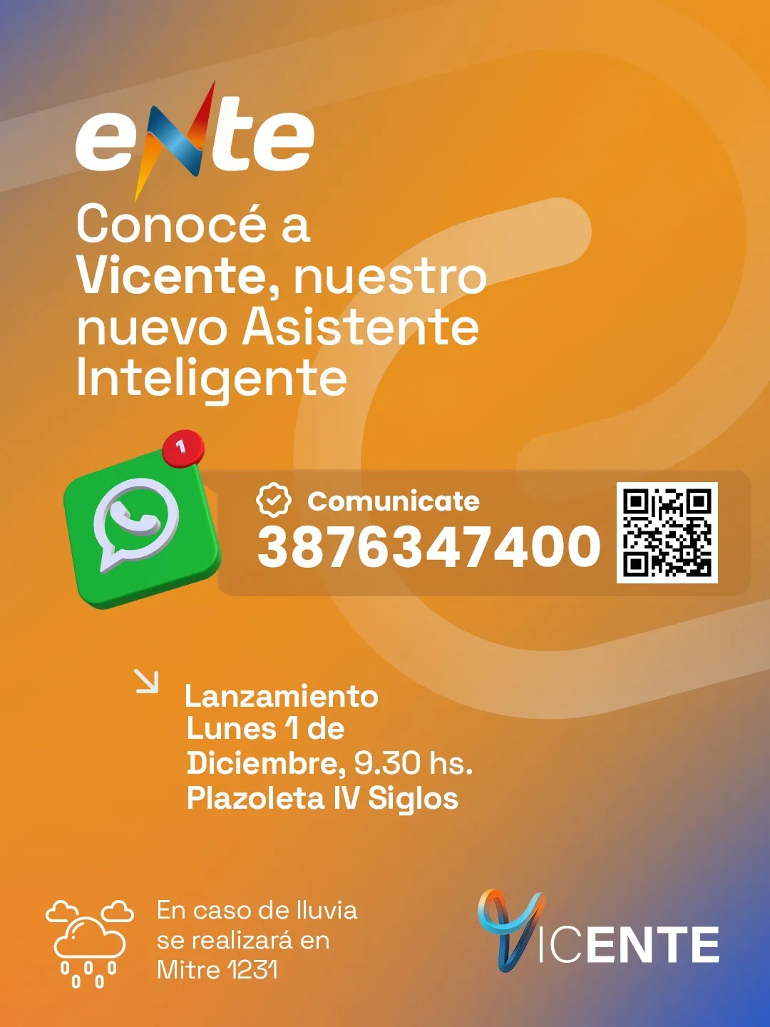 Durante la actividad se realizará una demostración interactiva para que los asistentes puedan probar Vicente y conocer su funcionamiento desde el canal oficial de WhatsApp: 387 6347400.